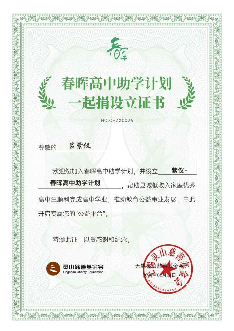 紫仪·春晖高中助学计划