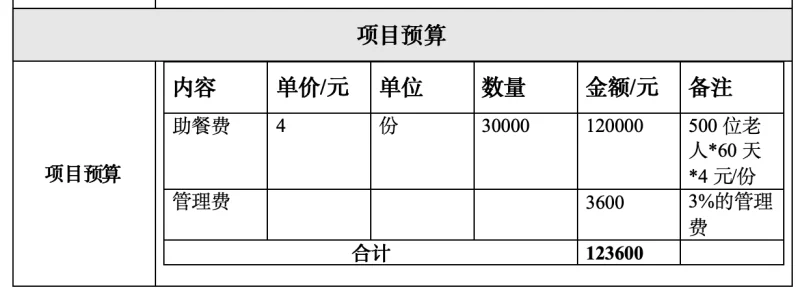 1.为不少于500位农村留守老人提供安全、营养、便捷的助餐服务,助力解决乡村留守老人的就餐困扰。